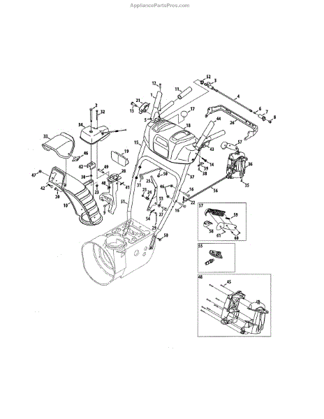 This lower chute is a quality replacement part that is used on several models of snowblowers. It is made of high-quality plastic for durability and is placed so it can direct snow in a certain direction when it leaves a snowblower. Over time and with regular use, this part can become damaged. If this occurs, it will need to be replaced so the discharged snow ends up in the right location.When replacing the lower chute, a wrench and work gloves will be needed. The snowblower should be placed on a flat surface, and the spark plug wire needs to be disconnected. The gearbox and the lower chute will need to be removed before the new replacement part can be installed. Line up the chute and install it used the cotter pin and flange lock nut. Replace all the components before using the snowblower.This is an authentic OEM replacement part that is sourced directly from the manufacturer. It is sold on an individual basis. The lower chute is used with snowblowers manufactured by Craftsman, Cub Cadet, Huskee, MTD, Troy-Bilt, Yard Machines, and Yard-Man.
