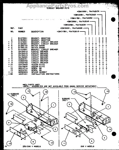 Parts for Amana LL-2A/P6333002R: Circuit Breaker Kits (Cbk420b1 / P6476306r) (Cbk430b1 / P6476307r) Parts