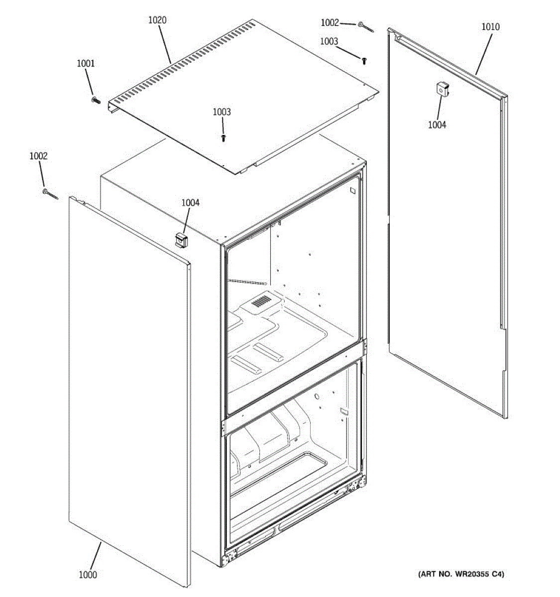 Mounting screw for refrigerator doors, shelves, kickplates, and interior components. Replace missing, stripped, or corroded screws during repairs.