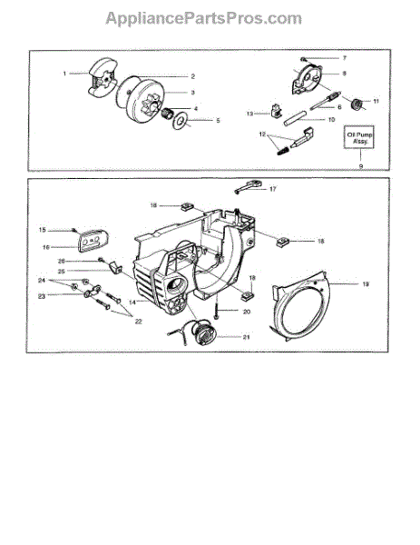 This is a plunger and gear assembly that provides lubricating oil to chainsaws. This part is compatible with over 125 chainsaws. Proper lubrication of the cutting chain is necessary for chainsaws as the rotation of the chain through the wood results in extreme heat and diminished ability to smoothly cut. Lubricating oil cools the chain and smooths the travel of the chain around the blade. Through continual use, the plunger and gear assembly will wear and cease to function. A sure sign of this occurs when the oil reservoir is full, but the chain is heating up and chewing rather than cutting wood. To replace the plunger and gear assembly, first, remove the chain and detach the bar. Then the clutch mechanism can be unscrewed, revealing the gear and plunger unit. Because contaminants can accrue in the reservoir and in the old assembly, it's best to discard any remaining oil safely and fill the reservoir with new oil. When replacing the gear and plunger assembly made by Jonsered, Husqvarna, and Poulan, it is best to use a genuine OEM replacement part such as this one, which is manufactured according to the specifications of the factory original.