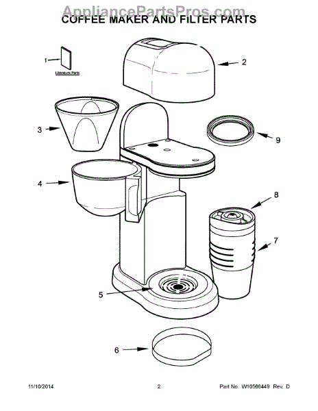 Parts for Whirlpool 5KCM0402EOB0: 02 - Coffee Maker And Filter Parts