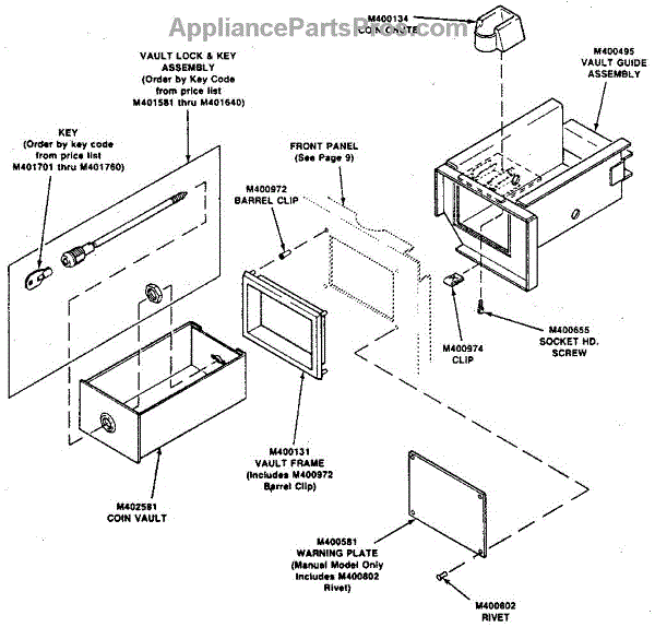 Parts for Kenmore 999.L30XG (999L30XG, 999 L30XG): Coin Vault And Guide Assembly Parts