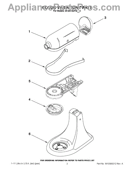 Parts for Kitchenaid 5KSM150PSIWH4: 01 - Color Variation Parts
