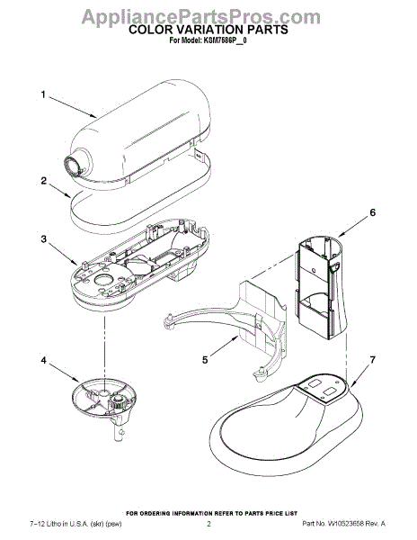 Parts for Kitchenaid KSM7586PSR0: 01 - Color Variation Parts