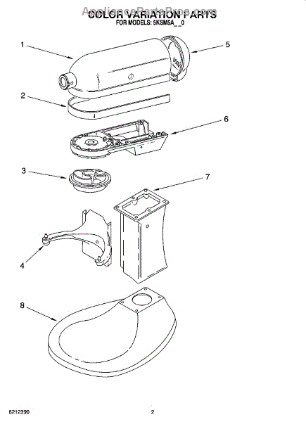 Note: For the rear sleeve bearing, order WPW10170081.