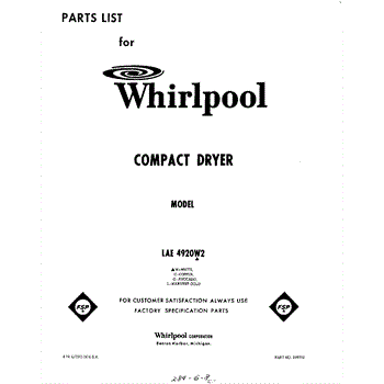Parts for Whirlpool LAE4920W2: 01 - Compact Dryer Parts