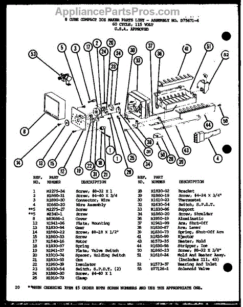 Parts for Amana CIC4H-P7621306W: 8 Cube Compact Ice Maker (Ic3h / P7621305w) (Ic3k / P7621309w) Parts