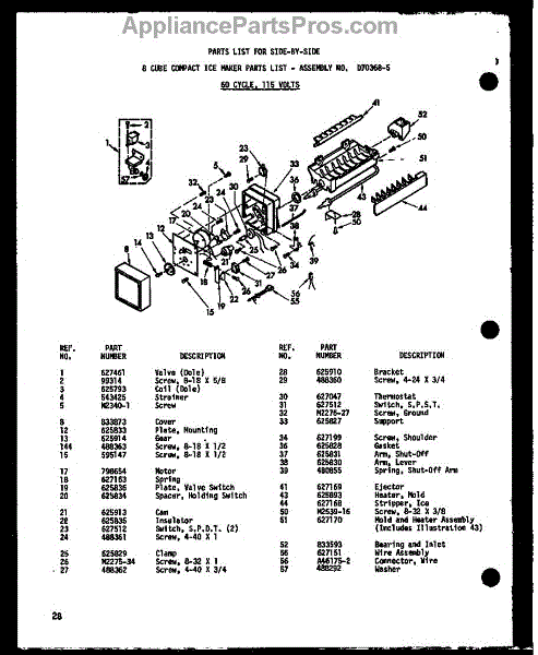 Parts for Amana ESR22N-A-P60350-33WA: 8 Cube Compact Ice Maker (Sr25w / P60350-27W) (Sr25w-C / P60350-27Wc) (Sr25w-Ag / P60350-27Wg) (Sr25w-A / P60350-27Wa) (Sd25w-C / P60350-28Wc) (Sd25w-A / P60350-28Wa) (Sd25w / P60350-28W) (Sd25w-Ag / P60350-28Wg) (Sr22w-C / P60350-30Wc) (Sr22w-A / P60350-30Wa) (Sr22w / P60350- Parts
