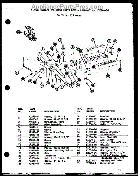 Parts for Amana SLI22F1-L-P7700013WL: 8 Cube Compact Ice Maker (Sli22f1-L / P7700013wl) (Sli22f1 / P7700013w) (Ic-2 / P36415-8W) Parts