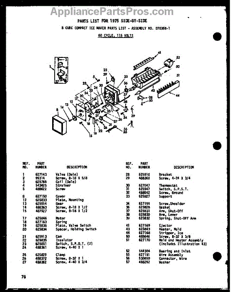 Parts for Amana SRN22N-1-A-P60230-78WA: 8 Cube Compact Ice Maker (Sr25n-1-C / P60230-81Wc) (Sr25n-1-A / P60230-81Wa) (Sr25n-1 / P60230-81W) (Sr25n-1-Ag / P60230-81Wg) (Sd25n-1 / P60230-82W) (Sd25n-1-C / P60230-82Wc) (Sd25n-1-Ag / P60230-82Wg) (Sd25n-1-A / P60230-82Wa) (Spn22n / P60230-63W) (Spn22n-C / P60230-63Wc) Parts
