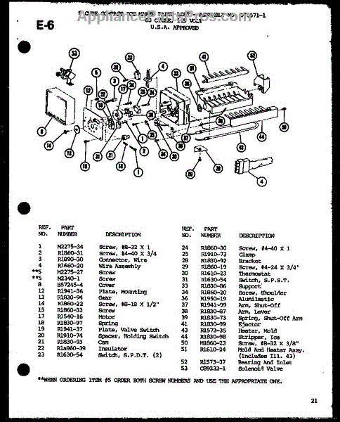 Parts for Amana TR18G-P75535-5W: 8 Cube Compact Ice Maker (Ic-3 / P76213-1W) Parts