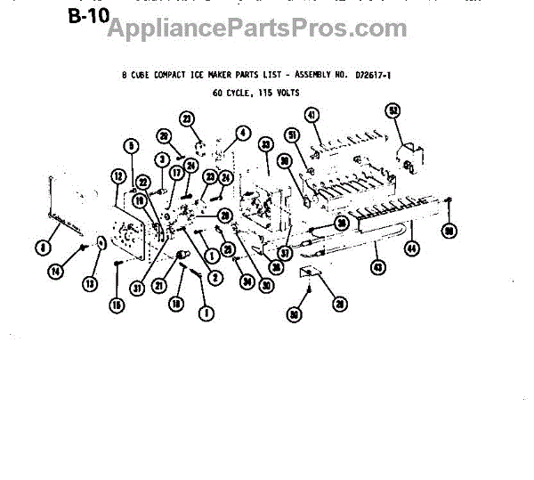 Parts for Amana BKI20EL-P74702LWL: 8 Cube Compact Icemaker D72617-1 Parts