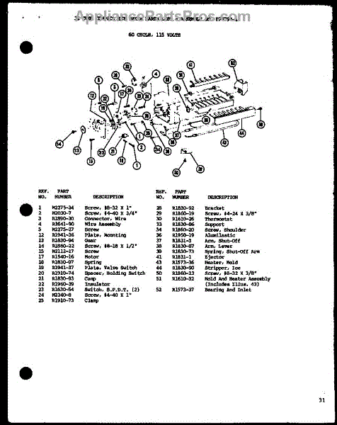 Parts for Amana SDI22F-G-P7700005WG: 12 Cube Compact Ice Maker (Sri19f-G / P7700004wg) (Sri19f / P7700004w) (Sri19f-L / P7700004wl) (Sdi22f / P7700005w) (Sdi22f-G / P7700005wg) (Sdi22f-L / P7700005wl) (Sri25f-G / P7700006wg) (Sri25f-A / P7700006wa) (Sri25f-C / P7700006wc) (Sri25f-L / P7700006wl) (Sri25f / P770000 Parts