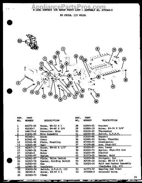Parts for Amana SLI22F1-P7700009W: 8 Cube Compact Ice Maker (Sli22f1 / P7700007w) (Sli22f1-L / P7700007wl) (Sli22f1 / P7700009w) (Sli22f1-L / P7700009wl) (Ic-2 / P36415-5W) Parts