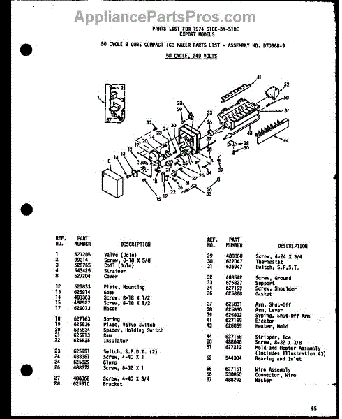 Parts for Amana SPN22N-A-P60201-76WA: 50 Cycle 8 Cube Compact Ice Maker (Esr17n / P60201-70W) (Esr17n-C / P60201-70Wc) (Esr17n-Ag / P60201-70Wg) (Esr17n-A / P60201-70Wa) (Esr22n / P60201-75W) (Esr22n-C / P60201-75Wc) (Esr22n-Ag / P60201-75Wg) (Esr22n-A / P60201-75Wa) Parts