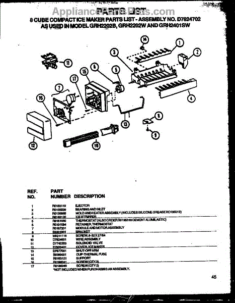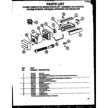 Parts for Modern Maid GRH2401SWW/P1168101WW: 8 Cube Compact Ice Maker Parts Lists (Grh2202be / P1168103we) (Grh2202ww / P1168102ww) (Grh2401sww / P1168101ww) Parts
