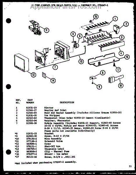 Parts for Amana BX20K-P7812503W: 8 Cube Compact Ice Maker (Ic3k / P7621310w) Parts