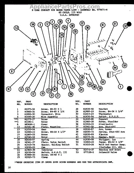 Parts for Amana TR18H-P7711036W: 8 Cube Compact Ice Maker (Ic-3H / P76213-5W) Parts
