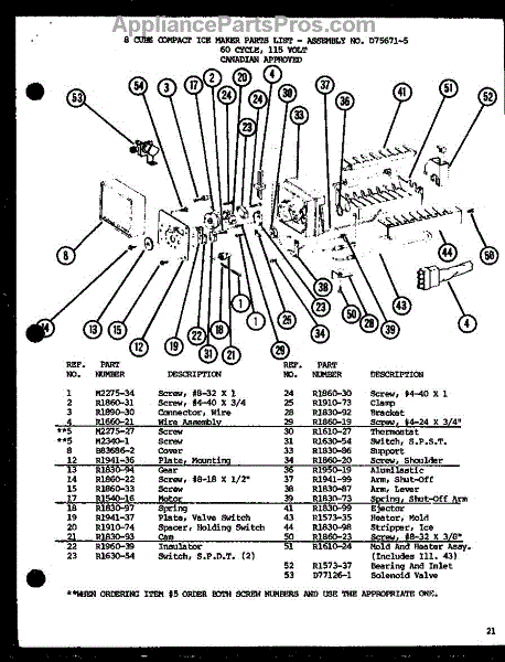 Parts for Amana TC18H-P7711037W: 8 Cube Compact Ice Maker (Cic-4H / P76213-6W) Parts