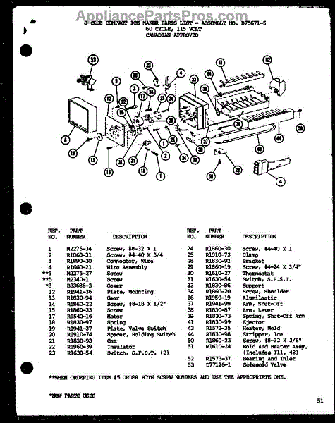 Parts for Amana TC22H-P7711035W: 8 Cube Compact Ice Maker (Cic-4H / P76213-6W) Parts