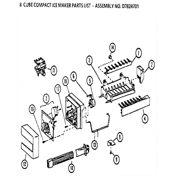 Parts for Amana 36271-P1121801W: 8 Cube Compact Ice Maker Parts