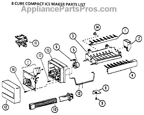 Parts for Amana 36518-P1121604W: 8 Cube Compact Ice Maker Parts
