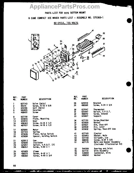 Parts for Amana BC20N-P602357W: 8 Cube Compact Ice Maker Parts