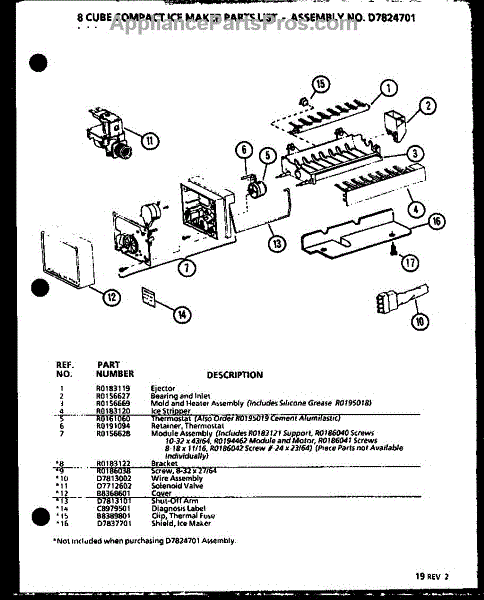 Parts for Amana BL20M-P7812518W: 8 Cube Compact Ice Maker (Ic3k / P7621310w) Parts