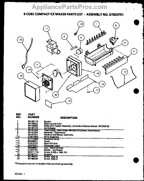 Parts for Amana BL20QL-P1125503WL: 8 Cube Compact Ice Maker (Ic3n / P1110701w) Parts