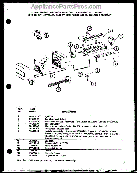 Parts for Amana SC25J-P7870113W: 8 Cube Compact Ice Maker (Ic4 / P7808101w) Parts