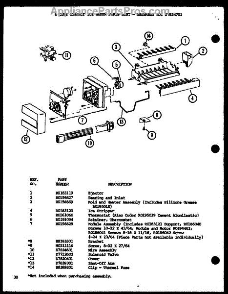 Parts for Amana SLDT25H-P7836027W: 8 Cube Compact Ice Maker Parts