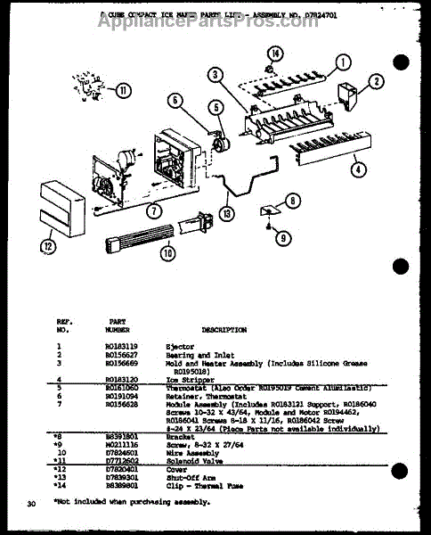 Parts for Amana SWPD25H-P7836036W: 8 Cube Compact Ice Maker Parts