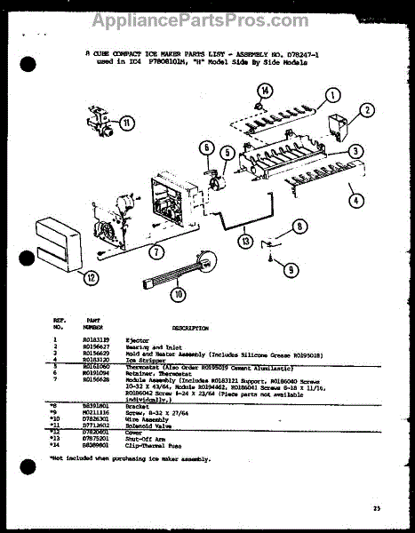 Parts for Amana SX25J-P1104025W: 8 Cube Compact Ice Maker (Ic4 / P7808101w) Parts