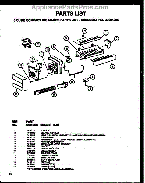 Parts for Amana SXD27NE-P1162411WE: 8 Cube Compact Ice Maker Parts