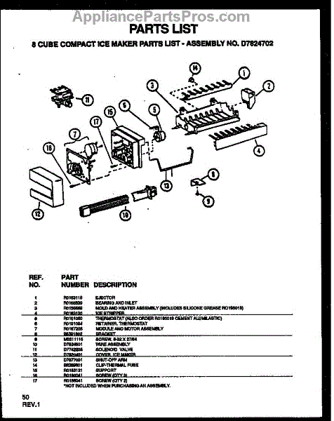 Parts for Amana SZD22NW-P1162401WW: 8 Cube Compact Ice Maker Parts