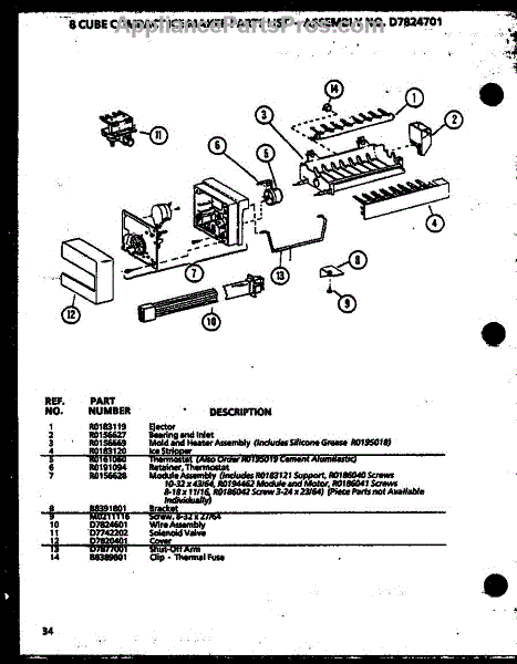 Parts for Amana SZD27KBL-P1101204WL: 8 Cube Compact Ice Maker Parts