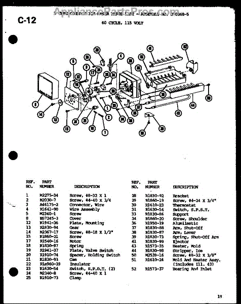 Parts for Amana TL20F-L-P76164-2WL: 8 Cube Compact Ice Maker (Ic-2 / P36415-5W) Parts