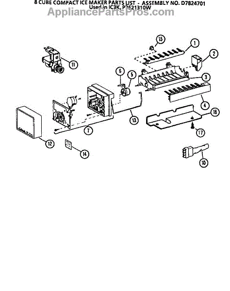 Parts for Amana TL20N-P1106214W: 8 Cube Compact Ice Maker Parts