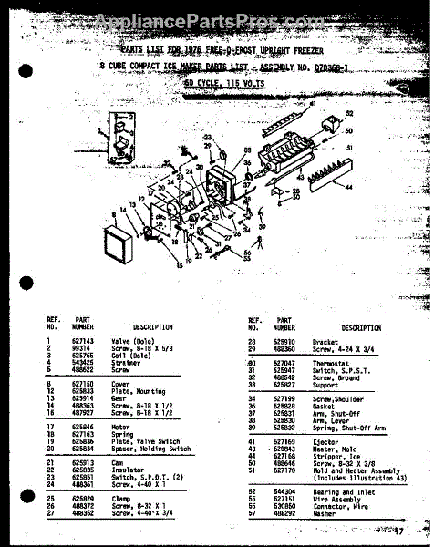 Parts for Amana UF22W/P60336-67W: 8 Cube Compact Ice Maker (Uf16w / P60336-12W) (Uf16w / P60336-64W) (Uf22w / P60336-13W) (Uf22w / P60336-65W) (Uf16w / P60336-14W) (Uf16w / P60336-66W) (Uf22w / P60336-15W) (Uf22w / P60336-67W) Parts