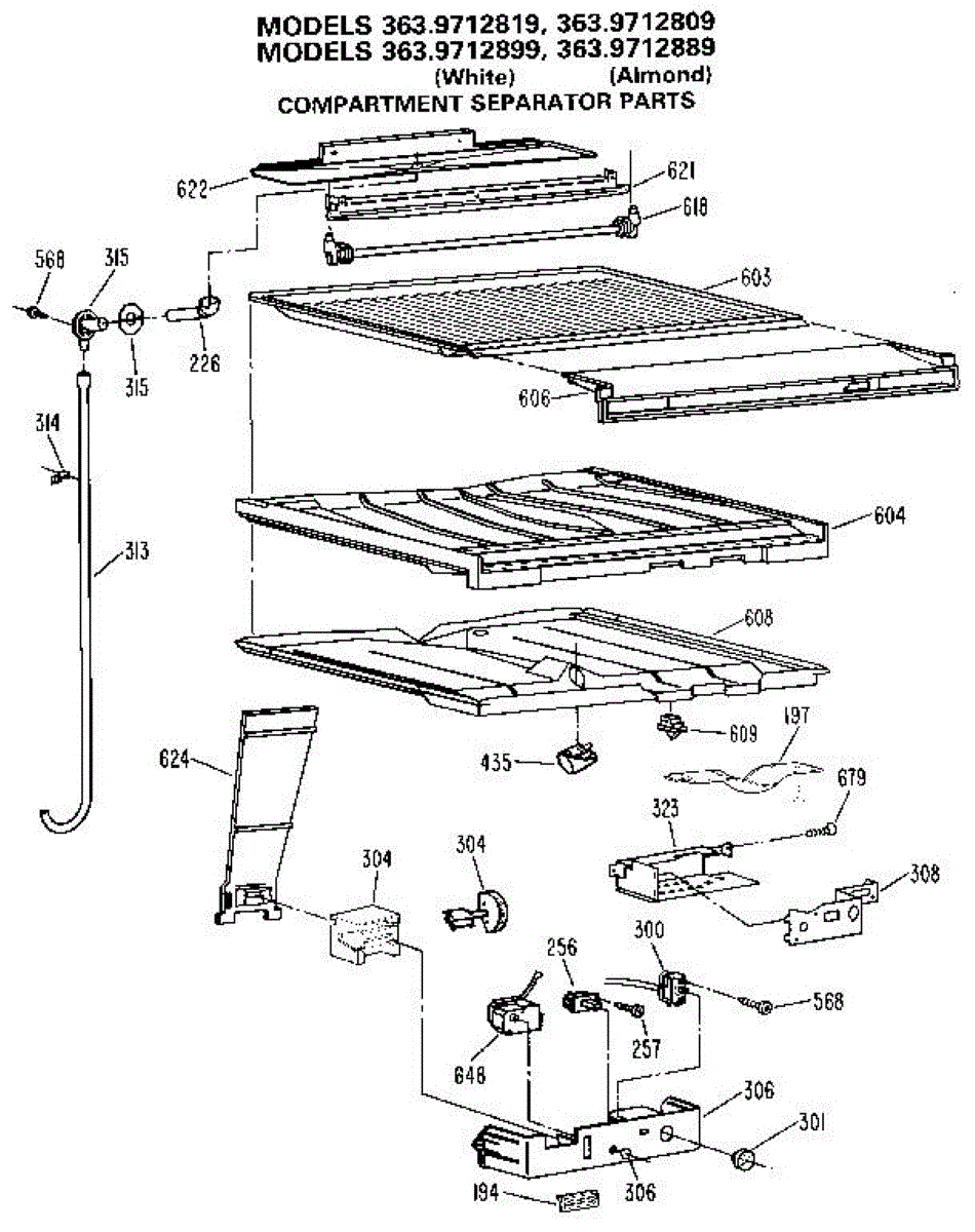 Parts for Kenmore 363.9712809 (3639712809, 363 9712809): Comparment Separator / Divider Block Parts