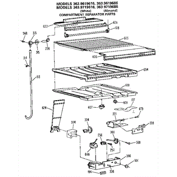 Parts for Kenmore 363.9719616 (3639719616, 363 9719616): Comparment Separator / Divider Block Parts