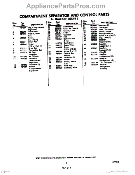Parts for Whirlpool EHT181ZKWR0: 09 - Compartment Separator And Control Panel Parts