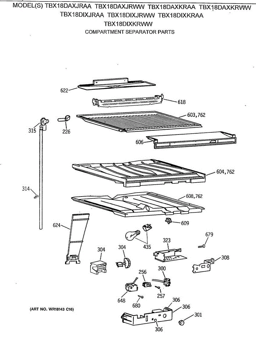 Parts for Ge TBX18DIXJRAA: 05 - Compartment Separator Parts