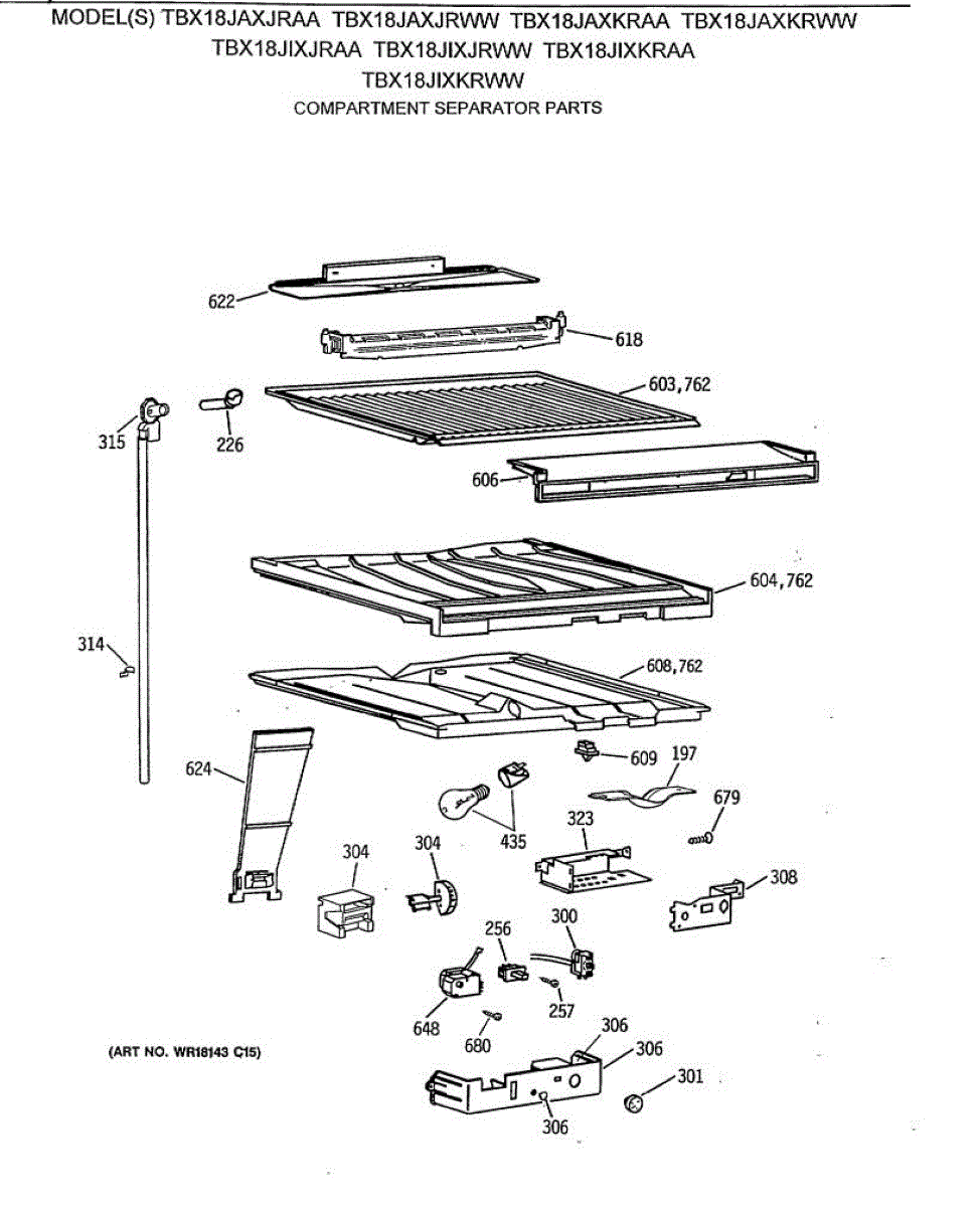 Parts for Ge TBX18JAXKRWW: 05 - Compartment Separator Parts