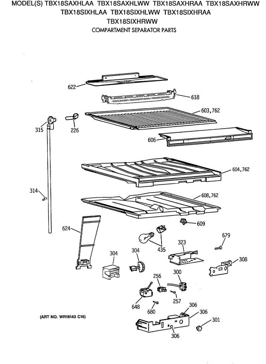 Parts for Ge TBX18SAXHRAA: 05 - Compartment Separator Parts