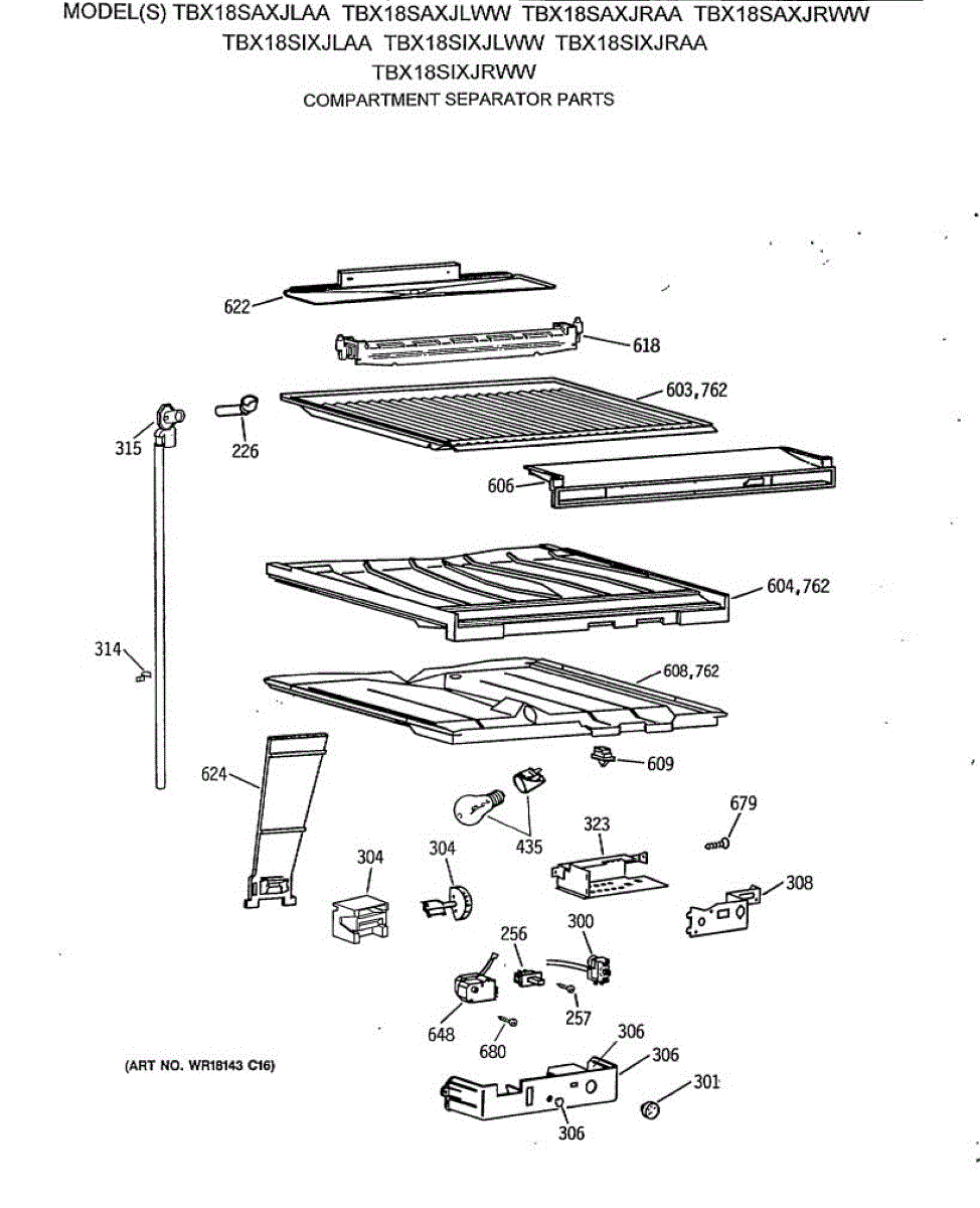 Parts for Ge TBX18SIXJLAA: 05 - Compartment Separator Parts