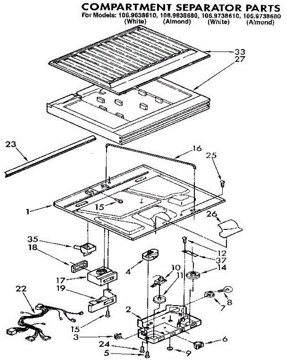 Parts for Kenmore 106.9738680 (1069738680, 106 9738680): Compartment Separator Parts