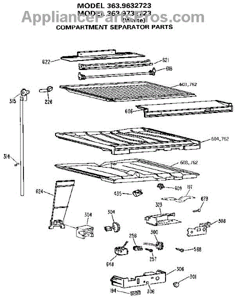 Parts for Kenmore 363.9632723 (3639632723, 363 9632723): Compartment Separator Parts