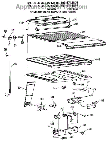Parts for Kenmore 363.9712895 (3639712895, 363 9712895): Compartment Separator Parts
