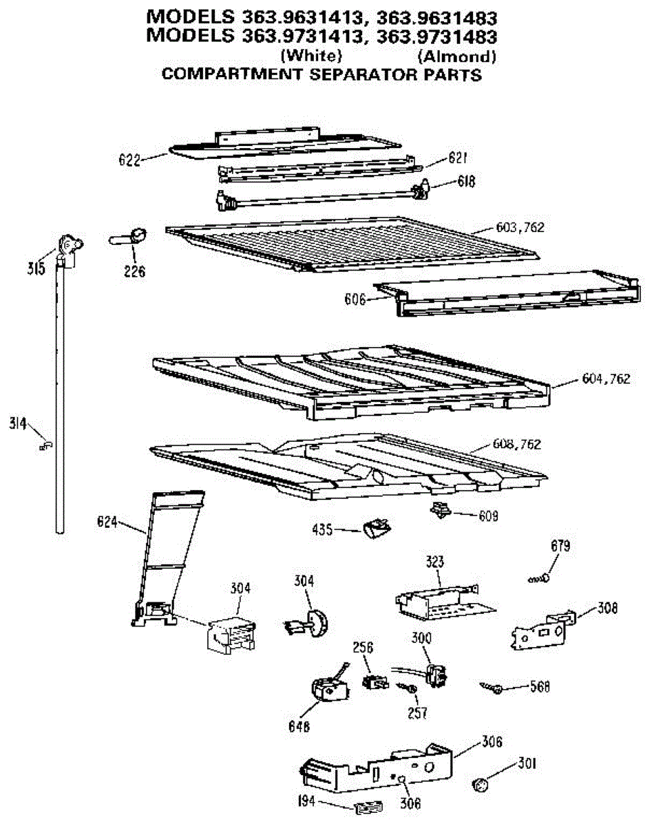 Parts for Kenmore 363.9731413 (3639731413, 363 9731413): Compartment Separator Parts
